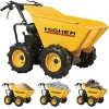 Wozidła marki HIGHER sprawdzają się nawet w najtrudniejszych warunkach dzięki wytrzymałej konstrukcji i zastosowaniu wysokiej jakości materiałów. Budowa naszych wywrotek spalinowych pozwala na osiągnięcie dużej wydajności oraz sprawności. Miniwywrotka HIGHER dzięki swojej niewielkiej szerokości może być używana w budynkach i wąskich przejazdach (otworach drzwiowych). Dzięki zastosowaniu w kołach wysokiego bieżnika wozidło bez trudu jeździ nawet po błotnistym czy piaszczystym terenie, gdzie występuje mało przyczepne podłoże.Wywrotka HIGHER doskonale nadaje się do przewożenia takich materiałów, jak kamienie, piach, żwir czy inne materiały sypkie, przez cegły, pustaki, drewno opałowe, kompost, paszę czy inne. Błyskawiczny wyładunek następuje przez zwolnienie blokady i ręczne przechylenie skrzyni. Całą maszynę napędza mocny 6,5-konny silnik znanej i cenionej marki LONCIN. Dane techniczneMoc silnika: 4-suwowy 196 cm³, 6,5 KM, LONCINRodzaj paliwa: benzynaBiegi: 3-przód ; 1-tyłNapęd: 4x4Maksymalna ładowność: 400 kgPojemność wodna: 240 LPojemność zasypowa: 350 LRozmiar kół: 4.00-8Waga: 160 kgSkrzynia biegów: mechanicznaWymiary (długość / szerokość / wysokość): 159 cm / 65,3 cm / 95 cm