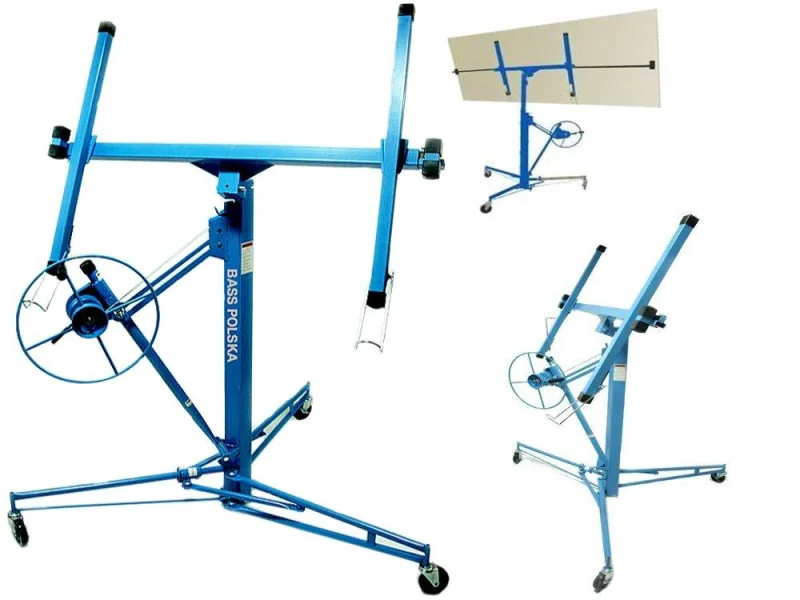 Podnośnik do regipsów BASS Dane techniczne:Maksymalny pionowy wysięg: 350 cmCiężar płyty: maks. 68 kgMasa podnośnika: 48kgDoba wypożyczenia: 29 zł (min 3 doby)