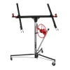 Podnośnik do płyt G/K 140-325cm DEDRA, udźwig 68kgpomoc montażowa przy płytach G/Kudźwig: do 68 kgwysokość podnoszenia: 140-325 cmmaks. wymiar płyty: 128x488 cmfunkcja pochylenia - praca na skosachpłynny mechanizm podnoszeniakoła transportowe z hamulcemłatwy montaż i demontażCechy podnośnika do płyt:Jednoosobowa obsługa – umożliwia samodzielne montowanie płyt, bez pomocy drugiej osobyFunkcja pochylania – umożliwia pochylenie płyty przy montażu na sufitach skośnych, ścianach ukośnych lub innych powierzchniachRegulowane wysięgniki – wysuwane ramiona nośne utrzymują większe płyty pokrycioweHamulec cofania – blokuje podnośnik, aby zapobiec jego cofaniu lub umożliwia swobodny ruchRamię blokujące – utrzymuje podnośnik w bezpiecznej pozycji roboczejPłynny mechanizm podnoszenia – pozwala precyzyjnie ustawić materiał na odpowiedniej wysokościRegulowany stelaż roboczy – można go dopasować do wymiarów podnoszonych płytStabilna konstrukcja – zapewnia pewne podparcie podnoszonych elementówŁatwe przemieszczanie –wspierana przez szeroki statyw z 3 antypoślizgowymi blokowanymi kółkamiBezproblemowy montaż i demontaż – podnośnik można szybko złożyć i rozłożyć